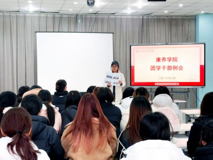 2026年3月3日,康养学院于体艺楼报告厅开展团学干部例会,分团委书记彭珊及院学生会全体成员参会。此次会议旨在帮助团学干部厘清各部门工作职责,明确工作方向,为新学期各项工作的有序开展奠定坚实基础。